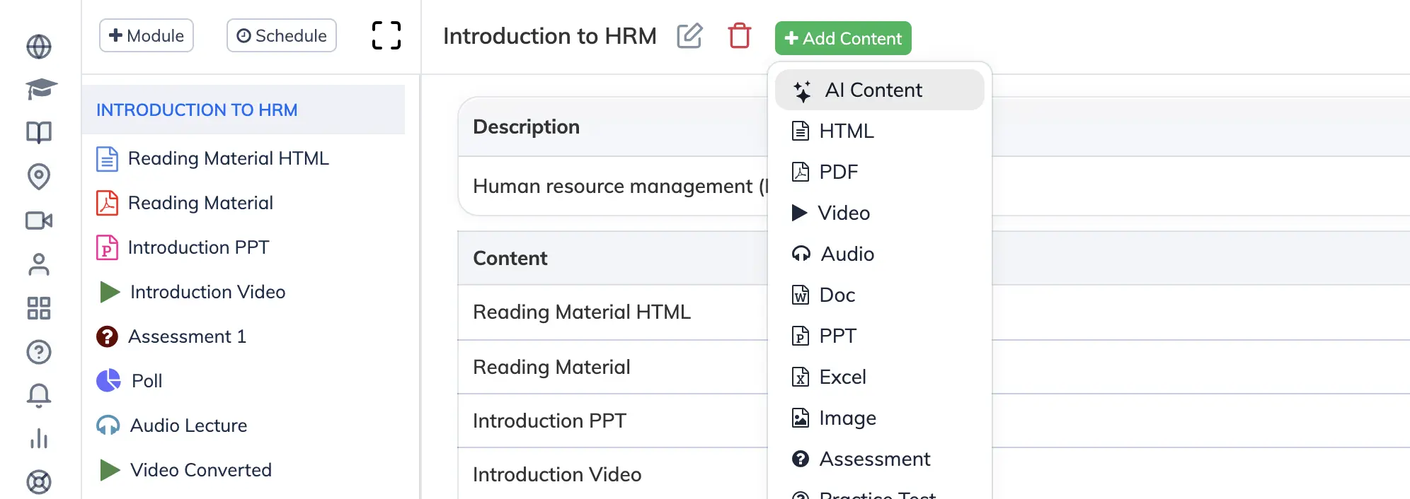 - To add AI-generated Content, navigate to Courses -> View Courses.