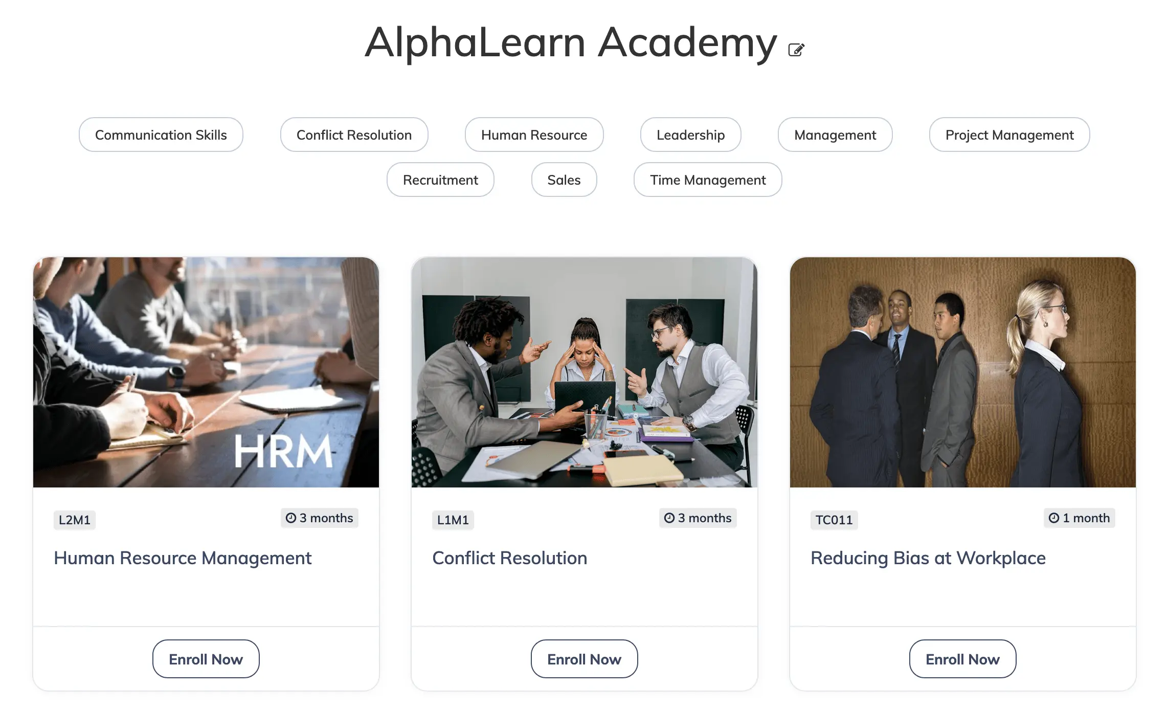 The Custom Home page feature lets you publicly showcase your courses with flexible layout and content customization. It also allows you to manage user login and registration, providing an effective way to highlight your course offerings.